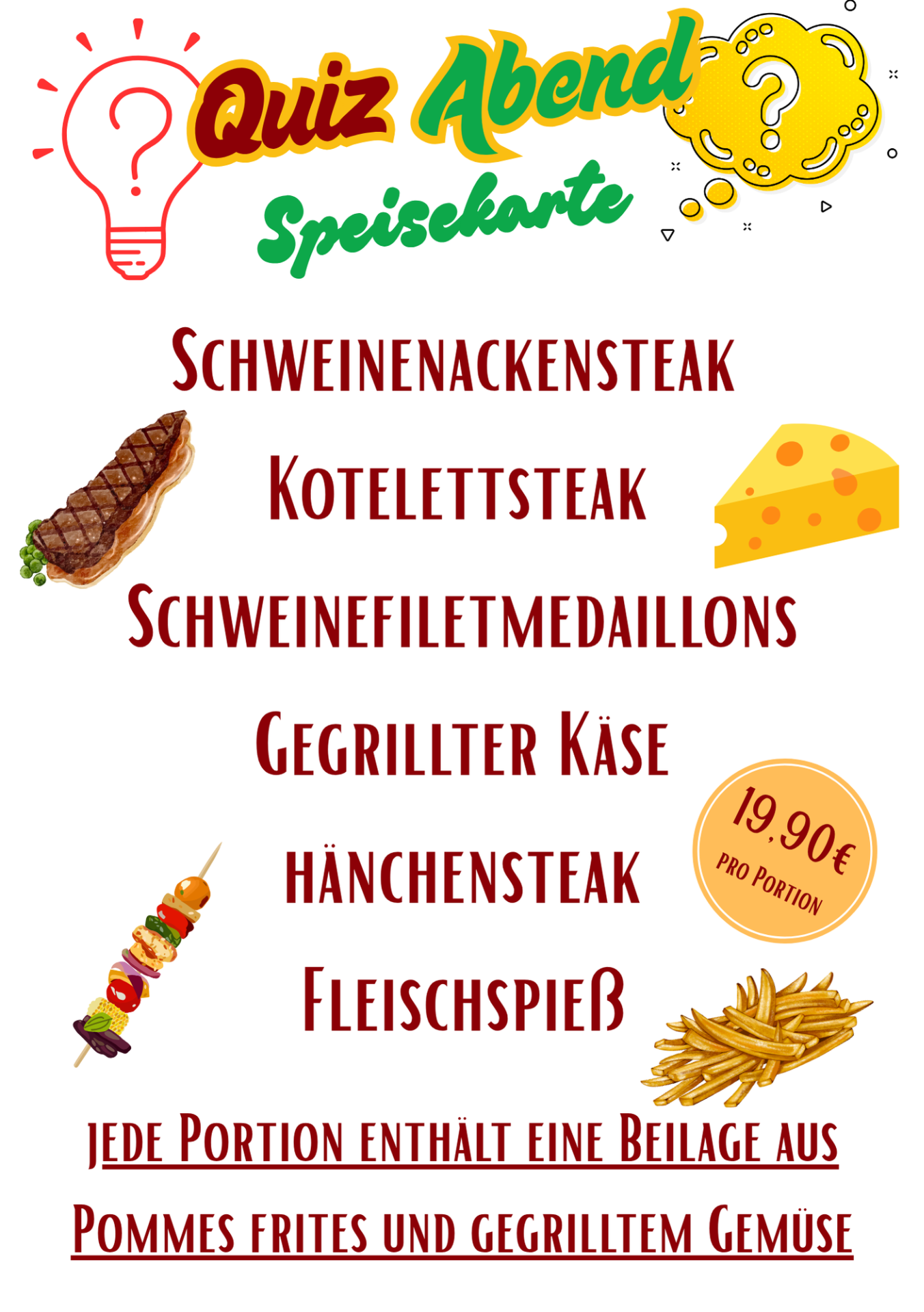 Ein neuer Samstag ist angebrochen und mit ihm unser erstes Badl - Quiz ! Und was ist dieses Badl-Quiz überhaupt? Es ist ganz einfach! Ihr bildet ein Team, bestehend aus 2 bis 5 Spielern, gebt eurem Team einen Namen, zahlt eine symbolische Startgebühr von 10€ pro Team und schon seid ihr im Spiel ! Es wird 5 Themen geben (Essen, Welt, Tiere, Sport, Film) und zu jedem dieser Themen gibt es 10 Fragen, also insgesamt 50 Fragen, die ihr schriftlich auf einem von uns vorbereiteten Blatt beantworten müsst.