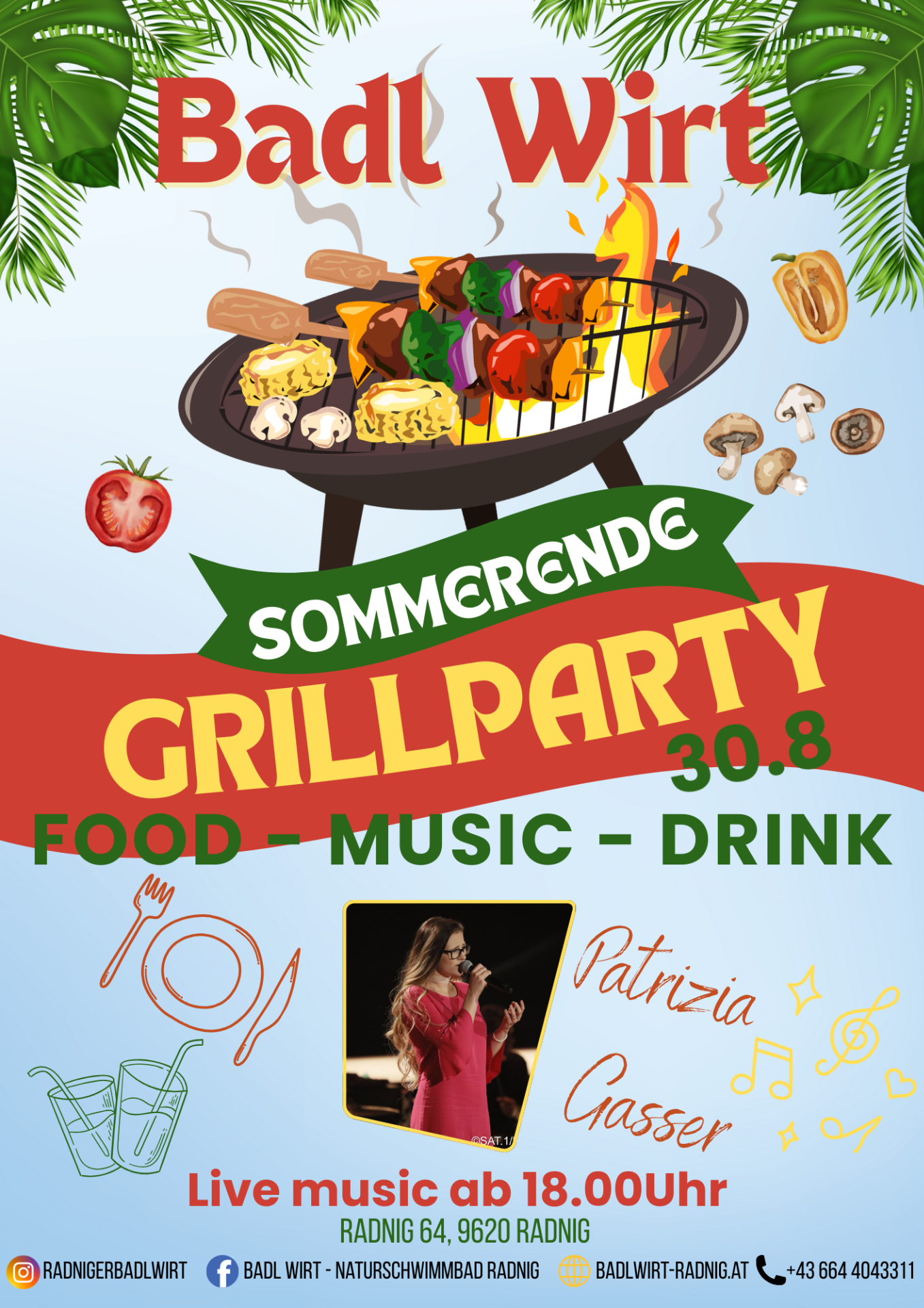 Der Sommer neigt sich langsam dem Ende zu und wir haben für Sie die letzte August-Veranstaltung vorbereitet. Freuen Sie sich auf die üblichen Grillspezialitäten wie Fleischspieße, Steaks, Käse usw. An diesem Abend wird uns die bekannte Sängerin Patrizia Gasser musikalisch begleiten. Wir laden Sie alle herzlich ein und freuen uns sehr auf Sie.